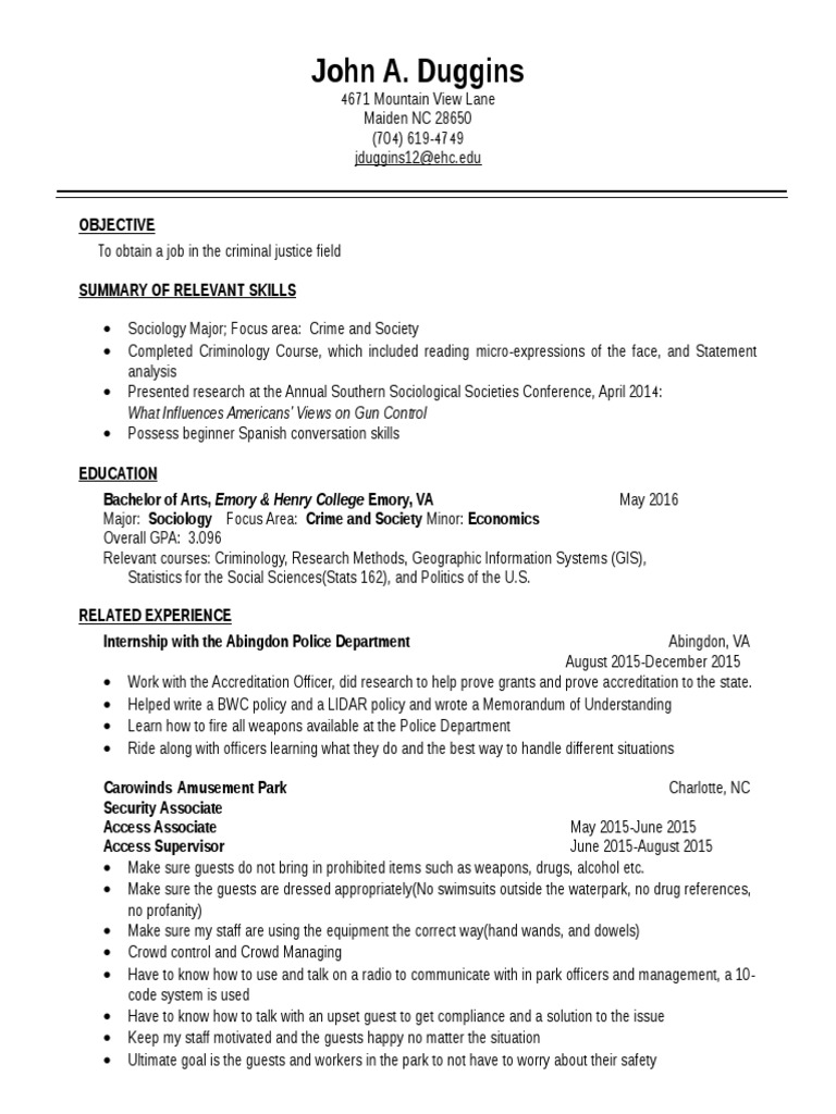 Aug 04, 2021 · a career objective is an optional component of resumes that briefly describes the skills, experience and abilities candidates offer. Criminology, criminal justice, homeland security, justice studies, law enforcement. Here are two cyber security analyst resume sample objectives: Writing a criminal justice resume can be as challenging as convincing the court to grant your client probation. Juvenile delinquency, correctional process, advanced criminology, organizational communication and sociology.